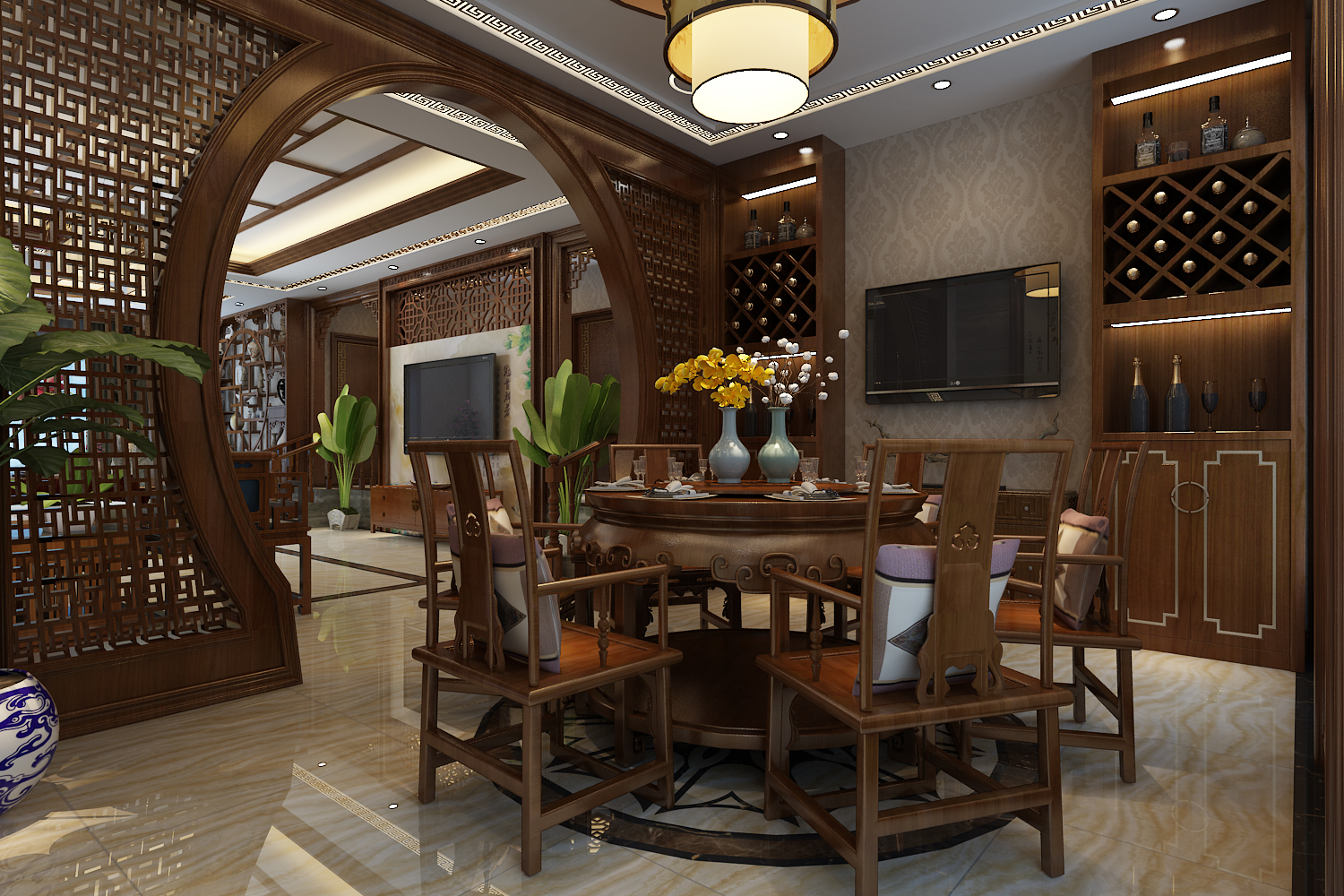 中式風(fēng)格追求的是一種修身養(yǎng)性的生活境界,中國傳統(tǒng)室內(nèi)裝飾藝術(shù)的特點是總體布局對稱均衡,端正穩(wěn)健,而在裝飾細(xì)節(jié)上崇尚自然情趣,花鳥、魚蟲等精雕細(xì)琢,富于變化,充分體現(xiàn)出中國傳統(tǒng)美學(xué)精神。